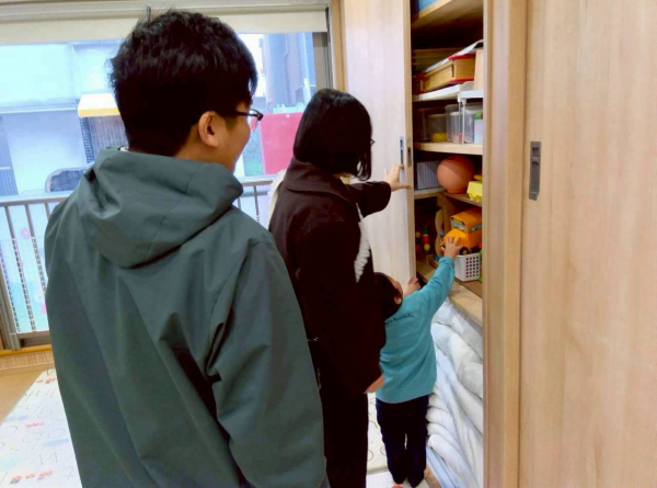 2歳児さんも、子どもたちが普段通りのリズムで過ごせるよう、朝のおやつから朝の会、排泄までの流れは、保護者の方にのぞき穴から見ていただきました😊