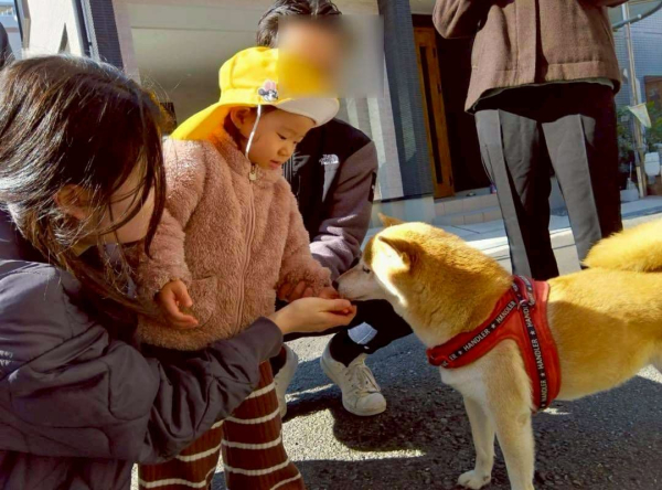 最初は少し緊張した表情を見せていた子も、犬がしっぽを振る様子を見て、自然と笑顔に変わっていく姿が印象的でした✨
