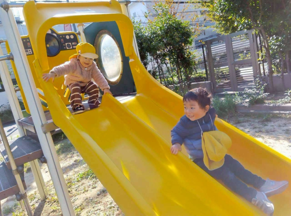 その後は、滑り台やブランコ、追いかけっこを楽しみます。