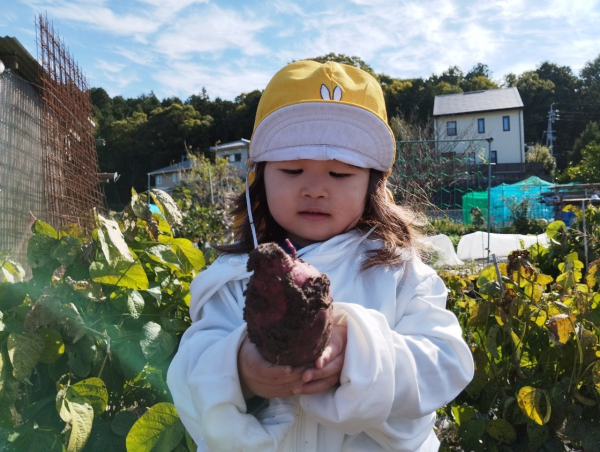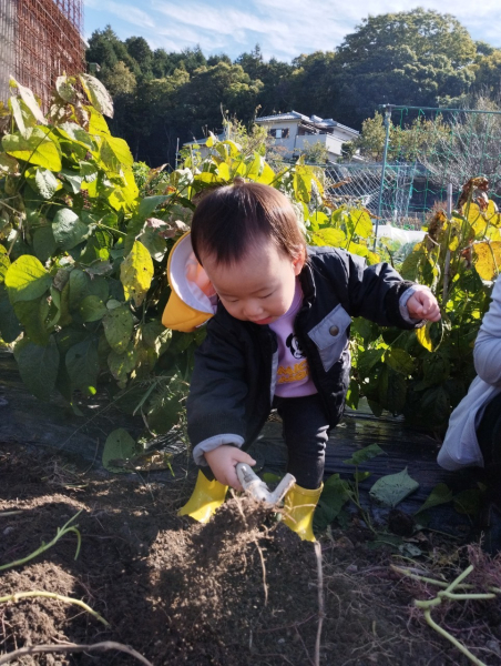 初めての体験に少し驚いた様子もありましたが、徐々に興味を示して、お芋ほりの雰囲気を楽しみました♪