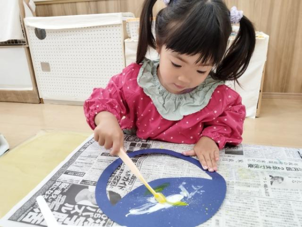 室内活動では、絵具をしたり、手先を使って製作などをしています。