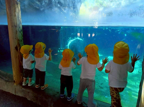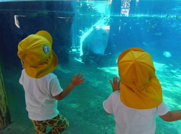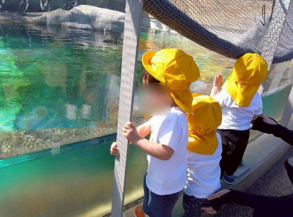 その隣では、2歳児の子どもたちが「ペンギン泳いでたね!」「また行きたいね!」と
