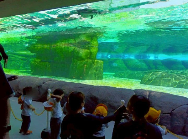 水槽内エリアへ移動すると、水の中をスイスイ泳ぐペンギンたちに夢中になる子ども達。