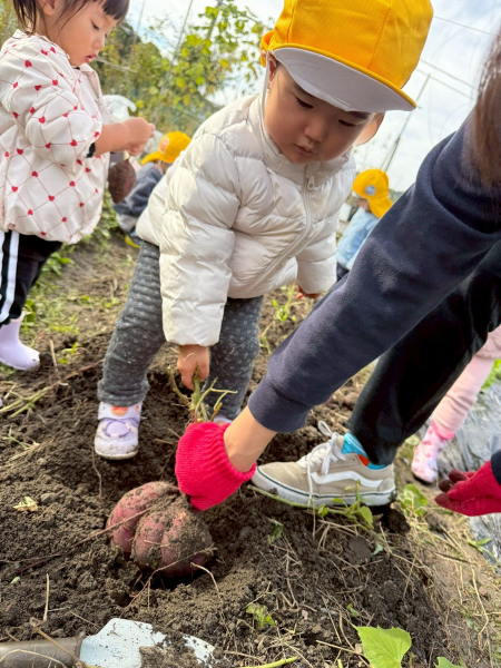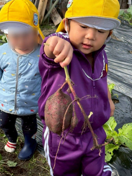 当園では、季節の自然に触れながら、食べ物がどのように育つのかを実際に体験することを大切にしています🍠